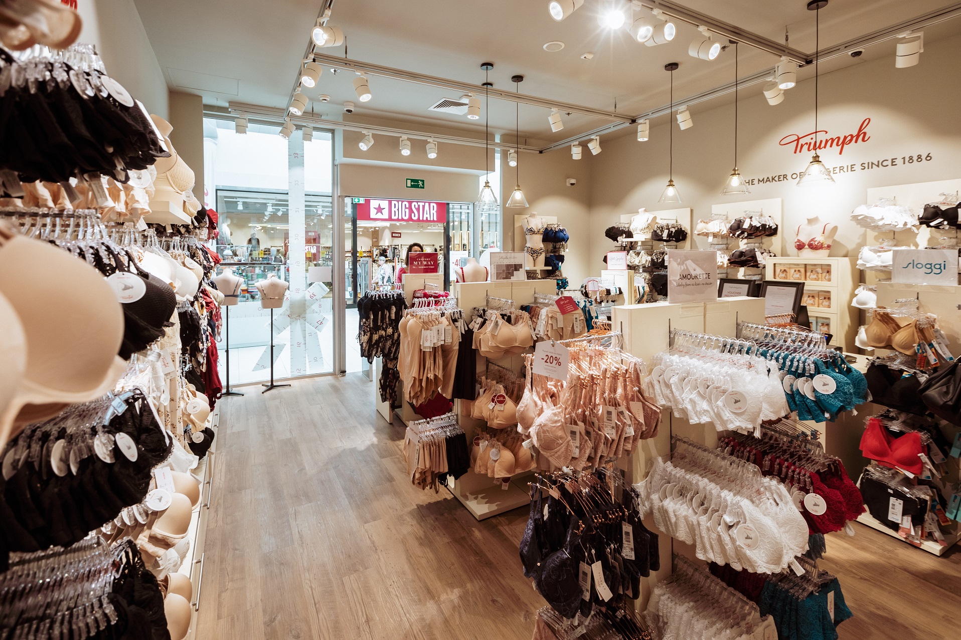 Klientki znajdą tutaj kompletną kolekcję aktualnie oferowanego asortymentu marki Triumph oraz sloggi m.in. bieliznę, koszule nocne, piżamy oraz stroje kąpielowe. Na miejscu skorzystać można także z profesjonalnych porad brafitterek, które pomogą dopasować bieliznę do kobiecej sylwetki.