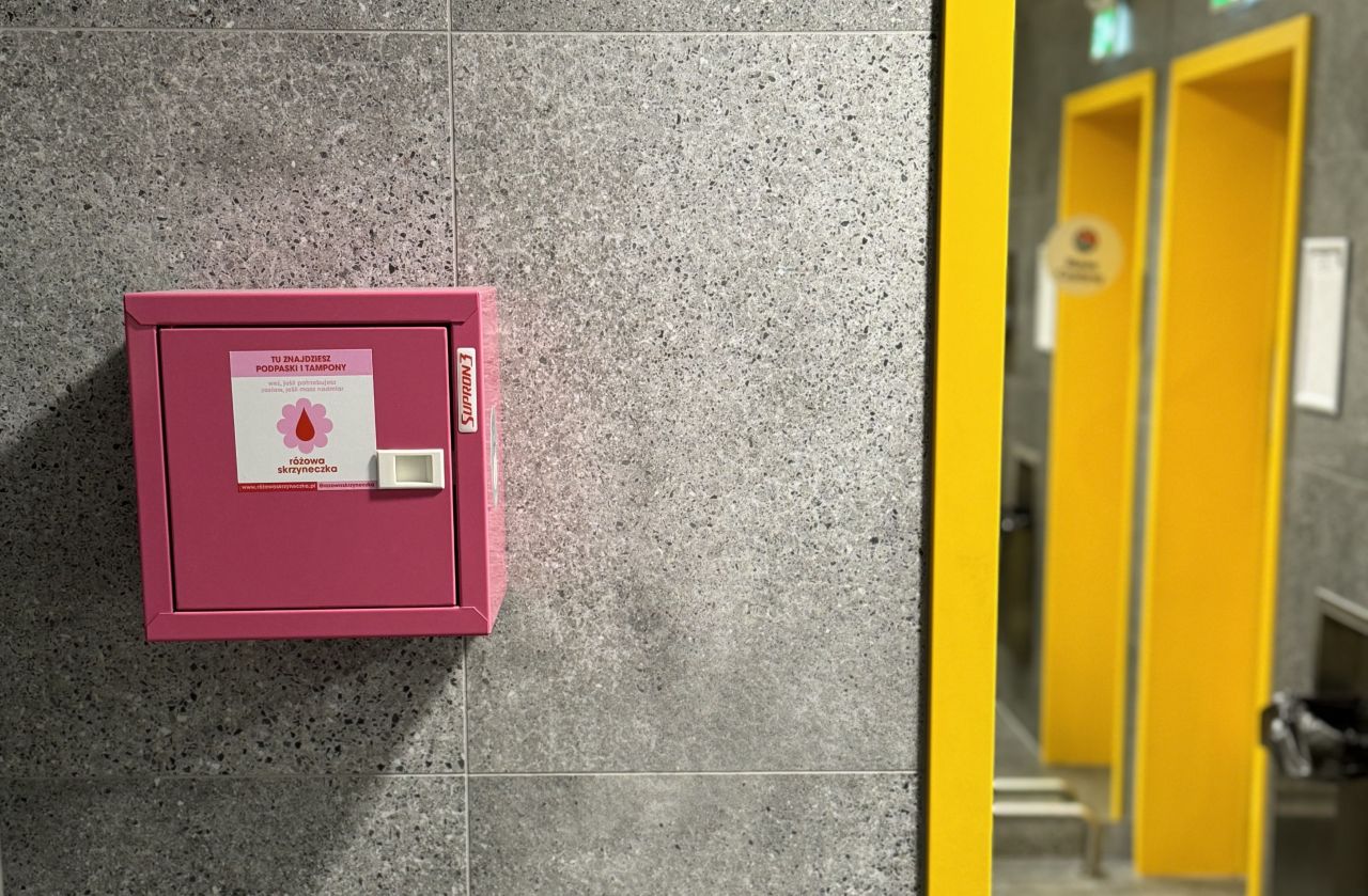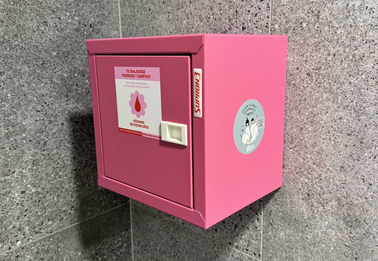 Tego typu pojemnik właśnie pojawił się w Nowych Czyżynach w Krakowie. Obiekt, we współpracy z Fundacją Różowa Wstążeczka, udostępnił go w toalecie dla klientów. Tym samym centrum handlowe trafiło na ogólnopolską mapę miejsc, które przełamują tabu menstruacyjne.