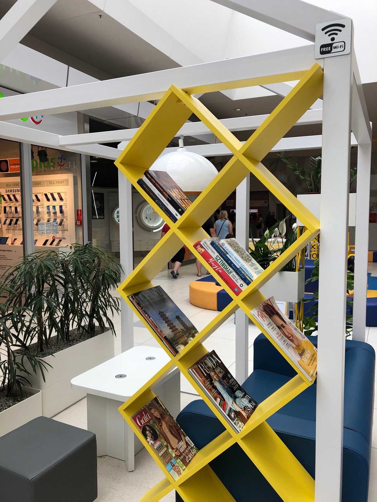 Biblioteczki można znaleźć w strefach relaksu. Jedna ulokowana jest vis a vis wejścia do Leroy Merlin, druga w okolicach sklepu home&you.